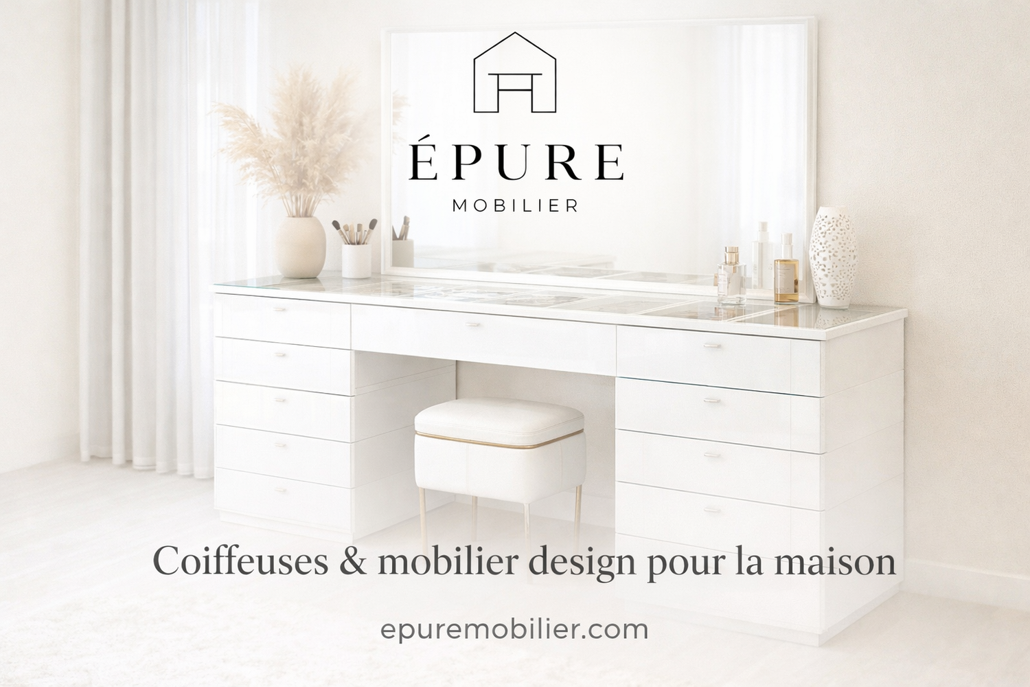 La coiffeuse Épure Mobilier - Blanche Vitré 150cm avec 13 tiroirs